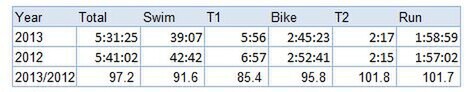 So both overall averages and ‘same athlete’ averages show that 2013 was 10mins faster than 2012. Unless you are me and felt terrible from the beginning, eventually stopping after the ride.