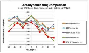 Even better – these numbers are based on testing with the foam Dave Zabriskie simulacrum – emulating the effect of having a rider on the bike.