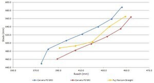 This chart maps the sizing progression of the NP3 vs the Original P3 and Fuji Norcom Straight. The NP3 is exactly the same sizing as the P5 for Sizes 48-61 (not that anyone has seen a 48 or 61 P5 yet…).