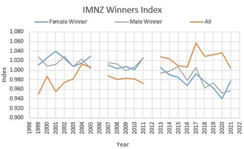 Clearly we can't claim that the absence of overseas athletes was the reason for the faster times this year, NZ athletes have been on the same trend as the overall stats.