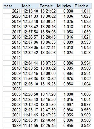 The boys do need to get moving on matching the improvement shown by the ladies - 7.48.21 in 2022...?